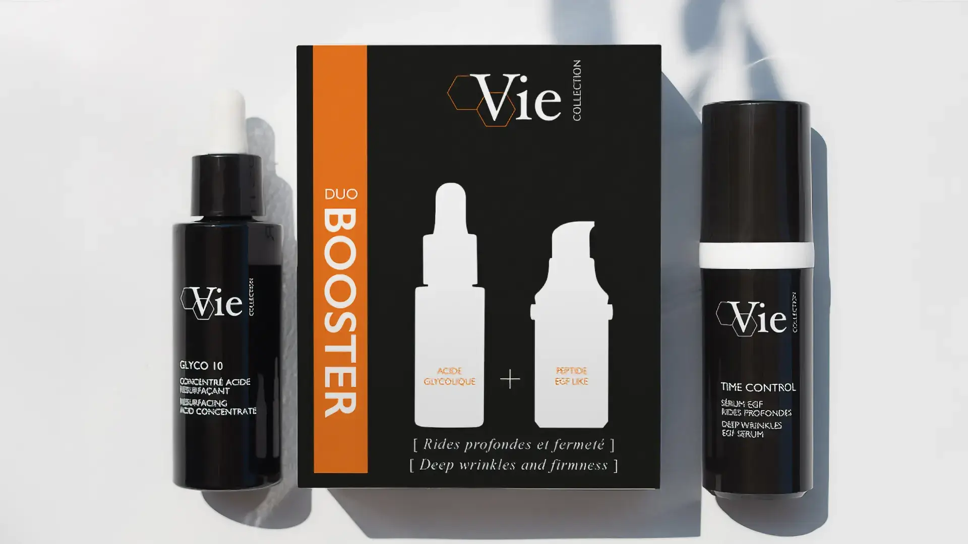 Scopri il Kit Rughe Profonde e Compattezza Duo Booster di Vie Collection, un duo anti-età a prezzo speciale, pensato per un’azione potenziata su rughe profonde e perdita di compattezza.